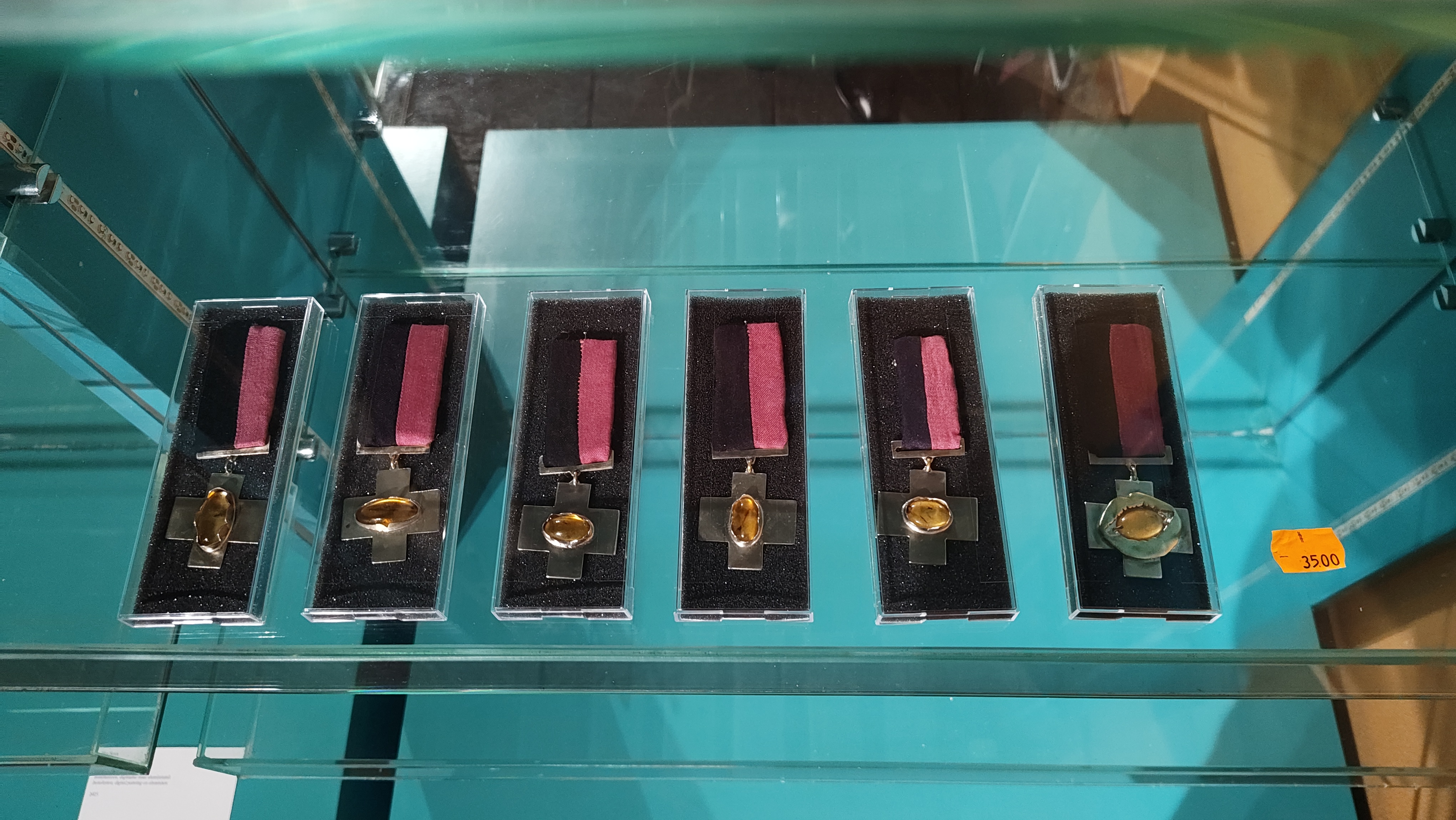 First-Class Honor of the Whore of Mary’s LandShoulder sash and insignia: silk, amber with insect, brass, nickel silverExecution of the medals of honor: Dana Lorên Vares 2025 |
